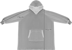 Envuélvete en comodidad con esta manta–sudadera oversize XXL en color gris. Combina flanela suave por fuera y felpa cálida por dentro, incluye capucha y un gran bolsillo canguro para las manos y pequeños objetos. El corte holgado y universal es perfecto para relajarse, leer y ver la TV y ofrece máximo calor y confort en los días fríos.