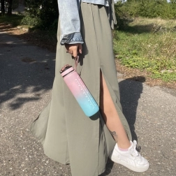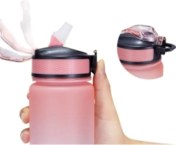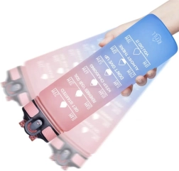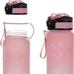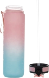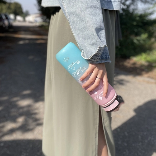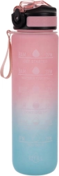 Mantén tu hidratación durante todo el día. La botella combina 1 l de capacidad con escala en ml (hasta 1000 ml) y oz (hasta 32 oz) y un horario desde la mañana hasta la noche, para saber exactamente cuánto y cuándo beber. Las frases motivacionales te apoyan en el trabajo, el deporte y los viajes.