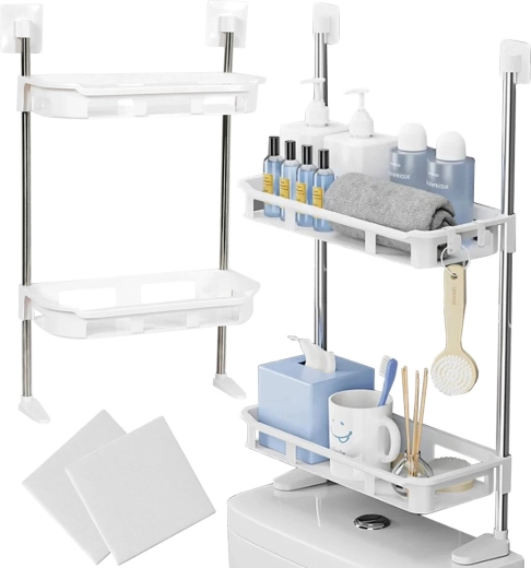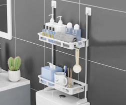 Este estante de pared sobre el inodoro es una opción ideal tanto para baños pequeños como grandes. Sus dos niveles proporcionan amplio espacio de almacenamiento para botellas, jabones, toallas o cepillos, manteniendo todo al alcance de la mano. El diseño minimalista en color blanco combina fácilmente con la mayoría de interiores.