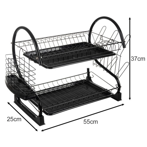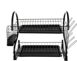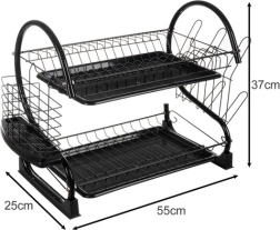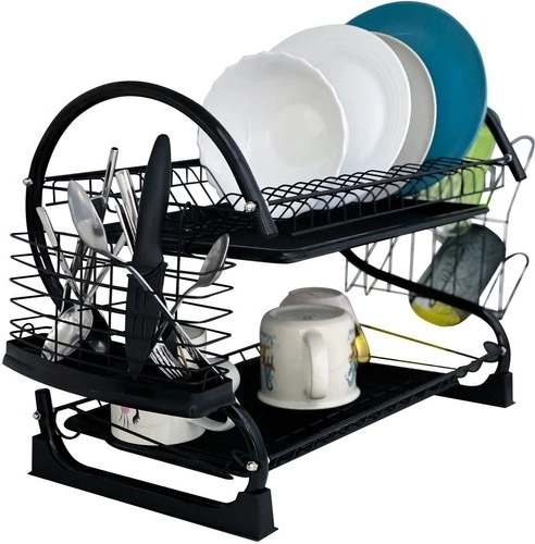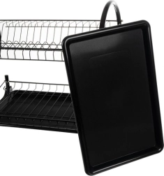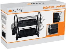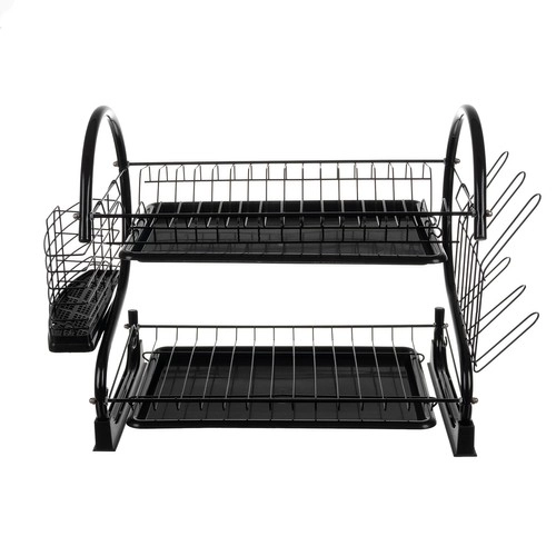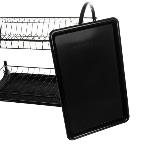 Revoluciona el secado de tu vajilla con el escurreplatos de dos niveles Ruhhy, que ofrece una estructura sólida de metal con un estilo moderno en negro. Gracias a su diseño de dos niveles, aprovecha al máximo el espacio de la cocina: el nivel superior es ideal para 16 platos, mientras que el inferior es perfecto para cuencos, tazas y vasos. Cada nivel cuenta con su propia bandeja para recoger el agua.