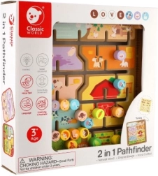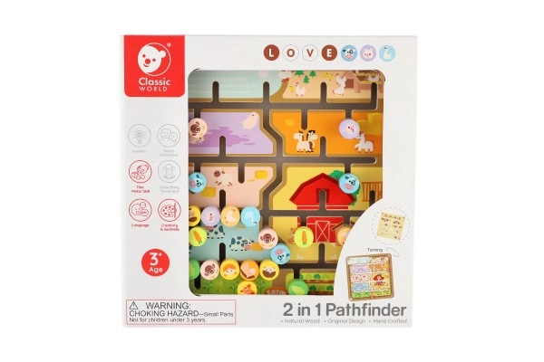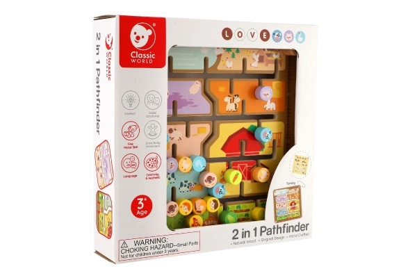 El laberinto de madera de doble cara 2 en 1 de la marca CLASSIC WORLD combina juego y aprendizaje: por un lado una granja con animales y por el otro lado abecedario con animales. Los niños entrenan la motricidad fina, el pensamiento lógico y la concentración al guiar las fichas por el laberinto hasta los lugares correctos. Fabricación de madera de calidad, tamaño 30 × 30 cm, adecuado a partir de 3 años.