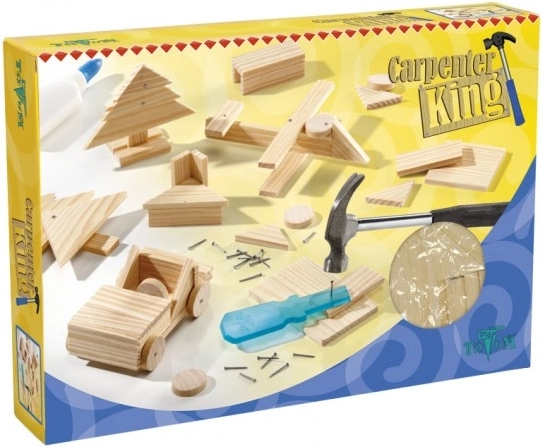 Descubre el set de madera Carpintero hábil, que ofrece a los niños a partir de 5 años horas de creación y aprendizaje. El conjunto incluye 57 piezas de madera, un martillo, 50 clavos, pegamento y una herramienta de goma para clavar en una práctica caja de 33 × 23 × 6 cm, ideal para el desarrollo de la motricidad fina y la creatividad.