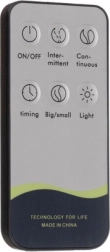 - Temporizador y modos: funcionamiento intermitente/constante, 1 h, 3 h, continuo.