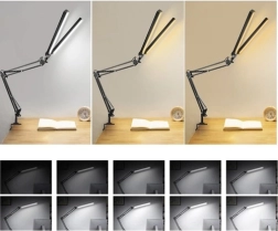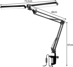 La lámpara está equipada con una fuente de luz doble que puedes ajustar de forma independiente para iluminar dos áreas de trabajo diferentes al mismo tiempo. El brazo es totalmente ajustable, lo que garantiza una alta flexibilidad de uso.