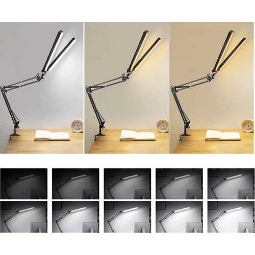 Disfruta de la ventaja de los LEDs de bajo consumo con una larga vida útil, que reducen significativamente el consumo de energía sin sacrificar la calidad de la iluminación. Esta lámpara está equipada con una fuente de luz doble, por lo que puedes tener una iluminación óptima en dos superficies de trabajo diferentes al mismo tiempo. Gracias al brazo ajustable, es fácil cambiar los ángulos y la altura de la luz según sea necesario.