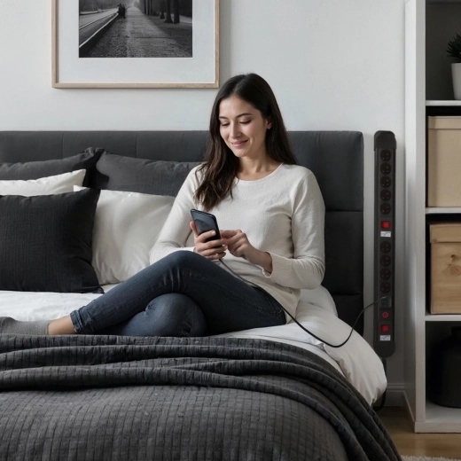 Controle dos grupos de cinco tomas por separado y ahorre energía. Apague fácilmente los equipos no utilizados con un solo toque.