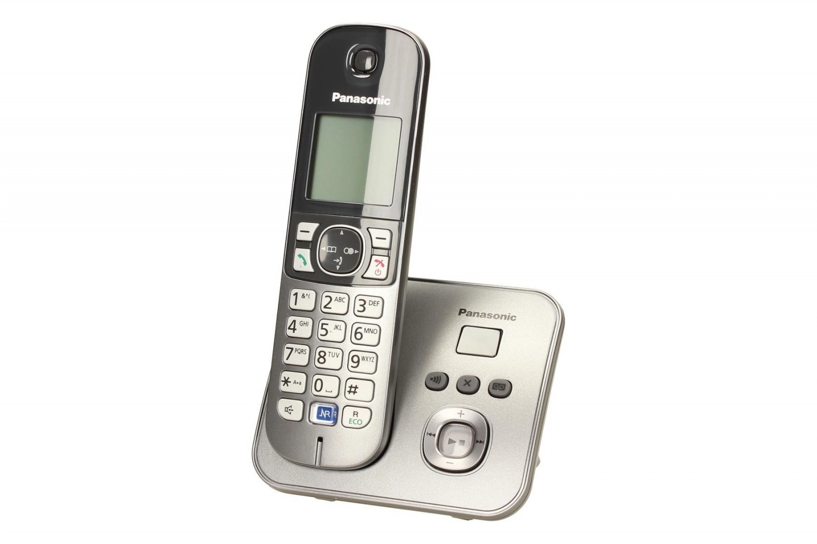 El modelo admite Caller ID con una memoria de hasta 50 registros y ofrece una completa agenda telefónica para 120 nombres y números. El eficiente modo One Touch Eco reduce la radiación y el consumo energético con un solo botón. El teléfono también es compatible con el localizador de llaves (Key Finder), para encontrar tus objetos con facilidad.