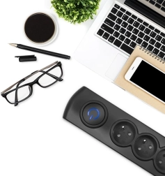 Una sola regleta, muchas posibilidades: conecta simultáneamente el ordenador, la TV, cargadores y pequeños electrodomésticos y mantén los cables bajo control gracias a su distribución inteligente.