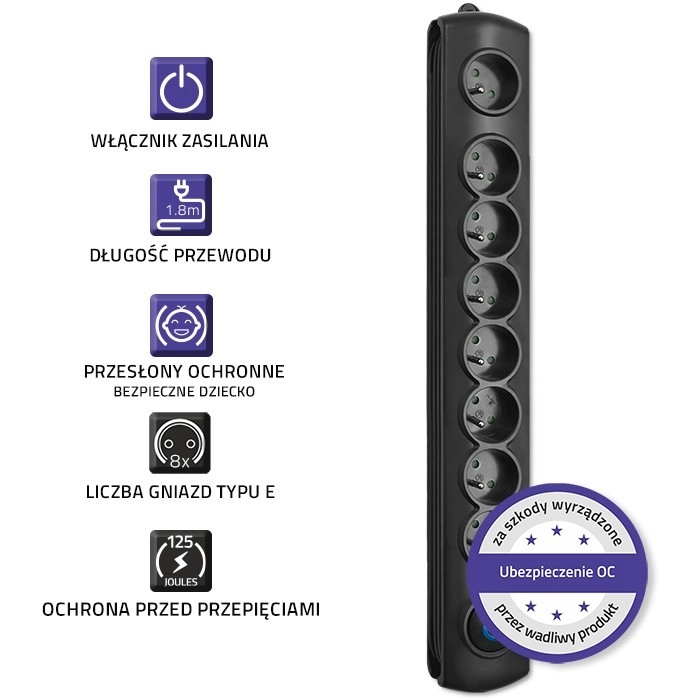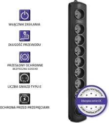 ¿Buscas una solución universal para alimentar varios dispositivos desde un solo enchufe? Esta regleta con protección contra sobretensiones ofrece una combinación de seguridad, ergonomía y diseño. Gracias a sus 8 tomas podrás conectar fácilmente TV, PC, cargadores y electrodomésticos de cocina, y el cable de 1,8 m te ofrece alcance suficiente.