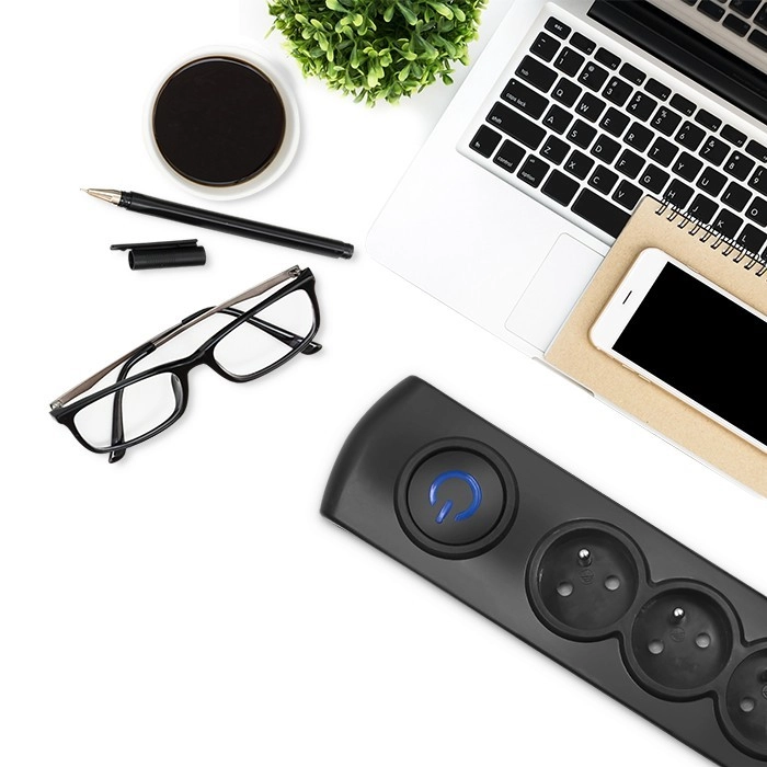 El gran botón iluminado permite apagar rápidamente toda la regleta sin agacharte. Ideal bajo el escritorio o en el salón: siempre sabrás si la alimentación está activada.