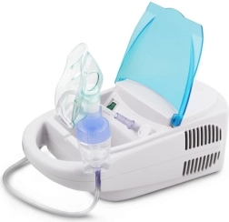 La base del inhalador es un flujo de aire que pasa por la manguera limpia del nebulizador. Cuando el aire entra en el nebulizador, convierte el medicamento prescrito en una niebla atomizada, lo que permite una inhalación sencilla.
