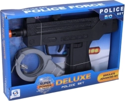 Con este subfusil policial con esposas, tu hijo se trasladará a un mundo de aventuras y acción. El set incluye un subfusil que emite efectos luminosos y sonoros, lo que garantiza una experiencia de juego realista. El paquete también incluye esposas que completan la experiencia del juego de policías.