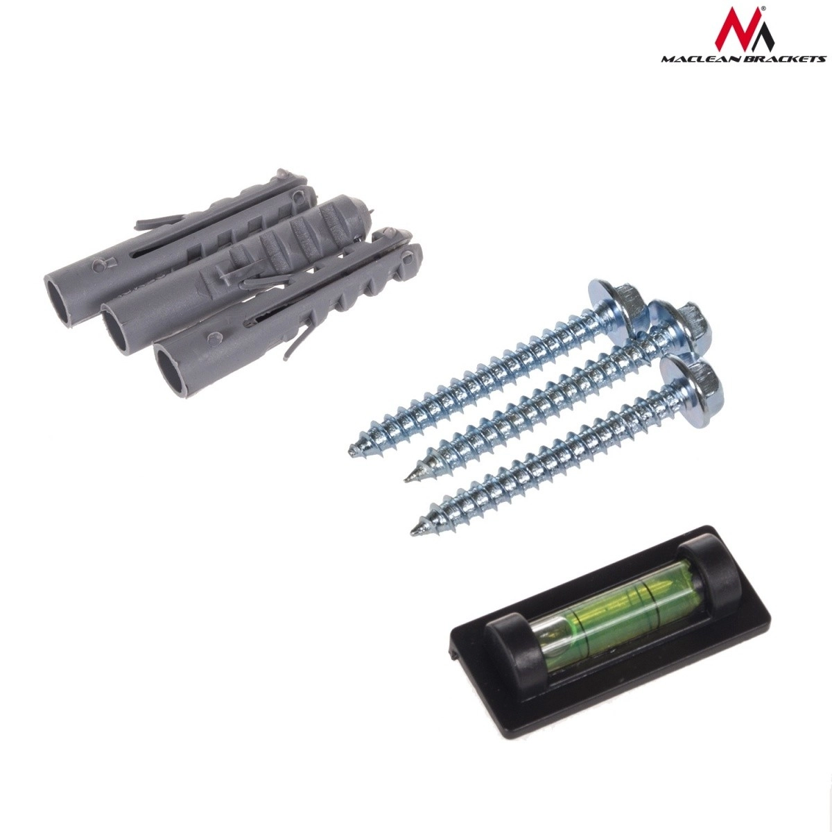 El elegante estante de vidrio de pared MACLEAN MC-738 es ideal para colocar dispositivos RTV como receptores set-top box, reproductores DVD/Blu-ray, consolas de juegos o centros multimedia. El vidrio templado con una capacidad de carga de hasta 10 kg y el acabado en negro combinan a la perfección con hogares modernos.