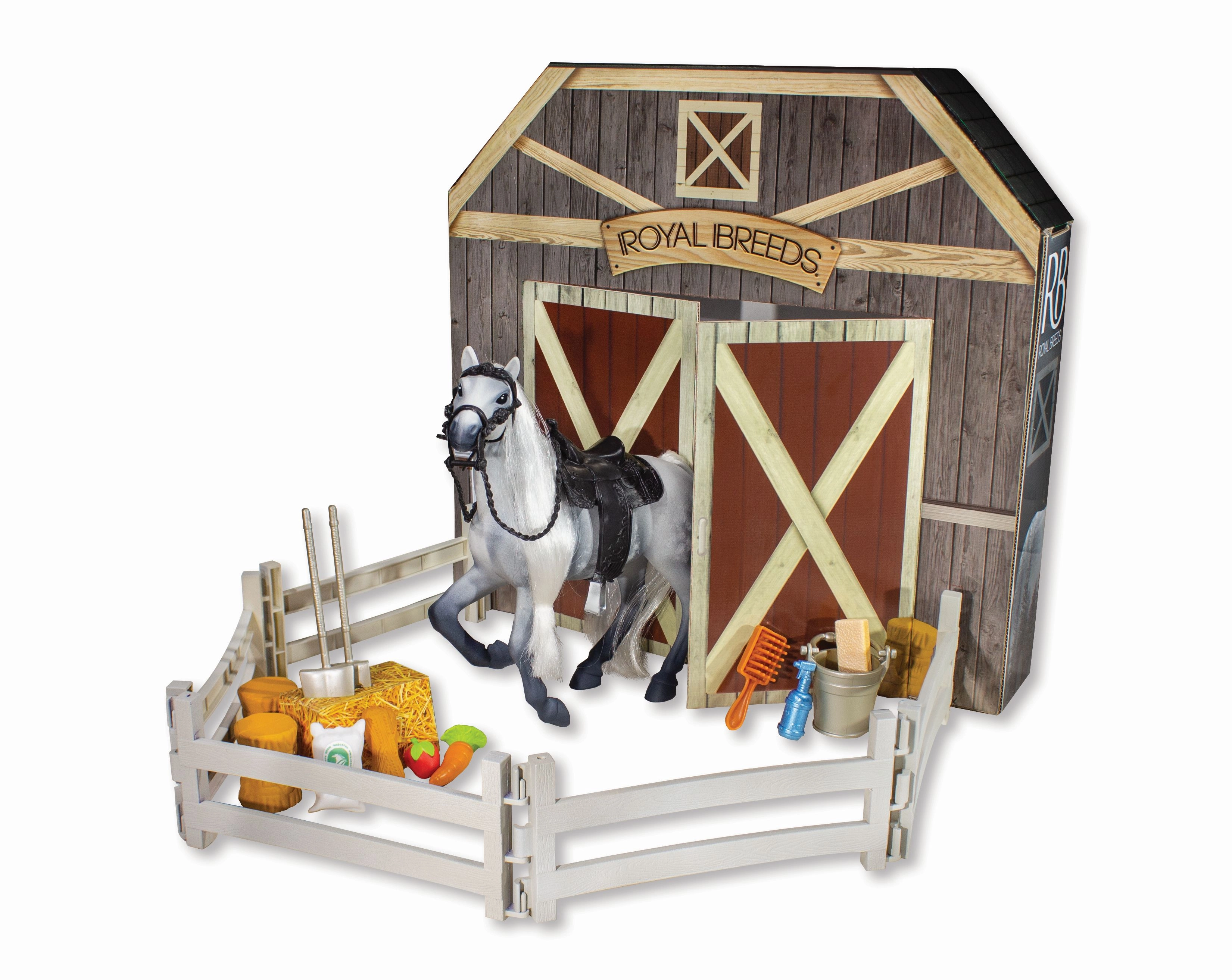 Caballo Royal Breeds con corral es el complemento perfecto para cualquier pequeño amante de los caballos. El paquete incluye una variada gama de accesorios que fomenta el juego creativo.