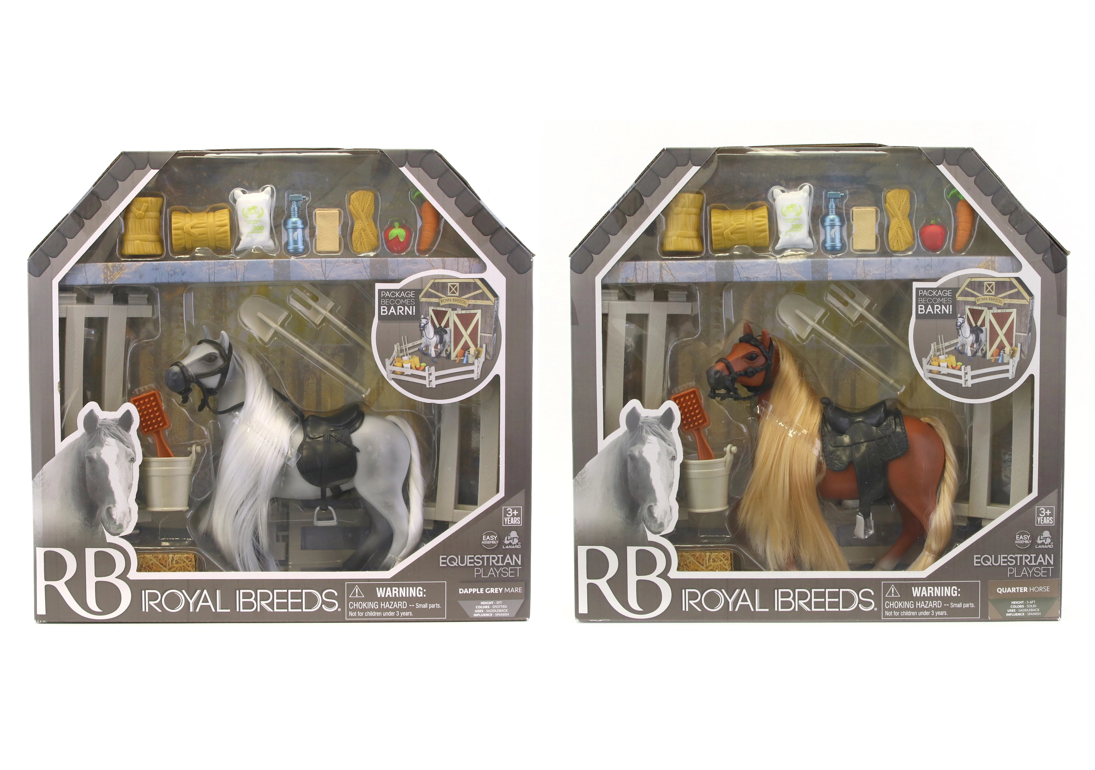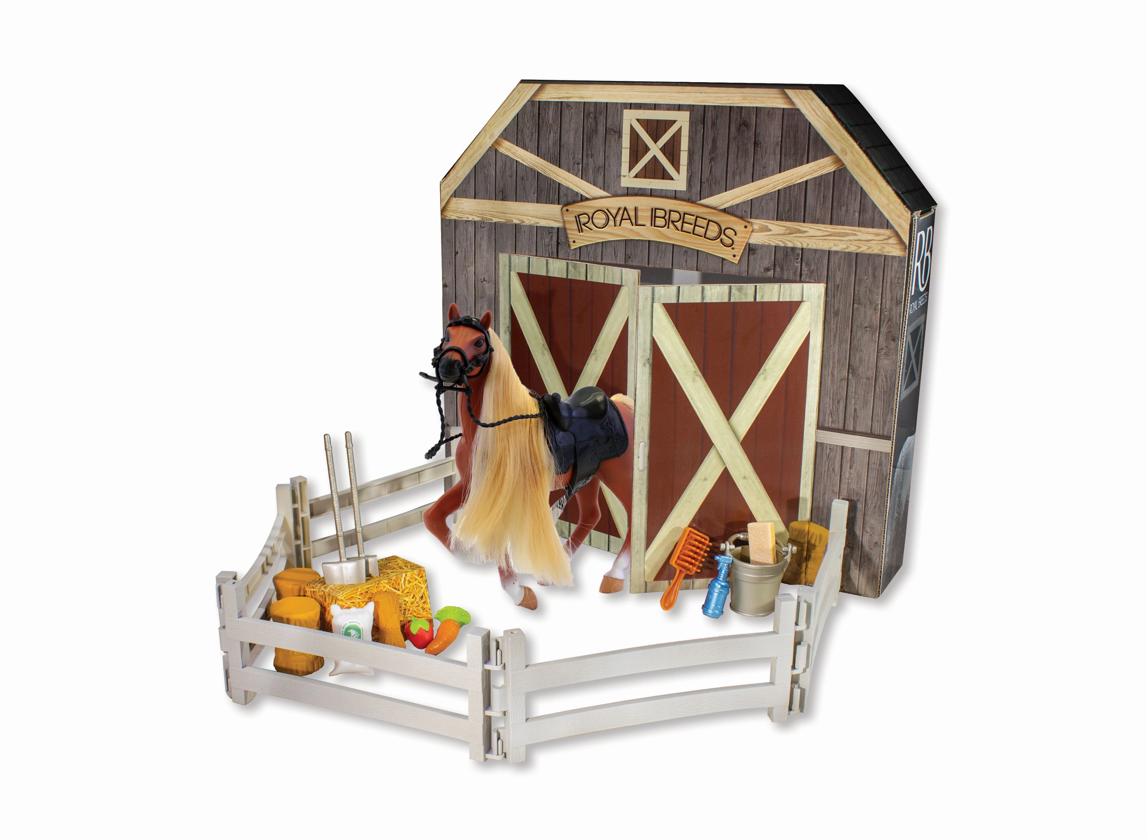 Este set incluye un Caballo Royal Breeds de 17 cm con elementos interactivos que cautivarán a cualquier niño. La parte trasera abatible del embalaje amplía las posibilidades de juego y se transforma en un establo: