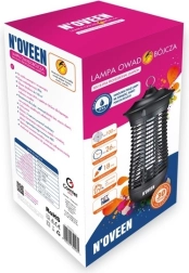 Potente lámpara antiinsectos con potencia de 18 W y protección IPX4 para uso interior y exterior. La combinación de luz UV-A 365 nm y rejilla de alto voltaje elimina eficazmente mosquitos, moscas y drosófilas. Resistente estructura metálica y ABS ignífugo, funcionamiento silencioso, sin químicos y fácil mantenimiento gracias a la bandeja extraíble.