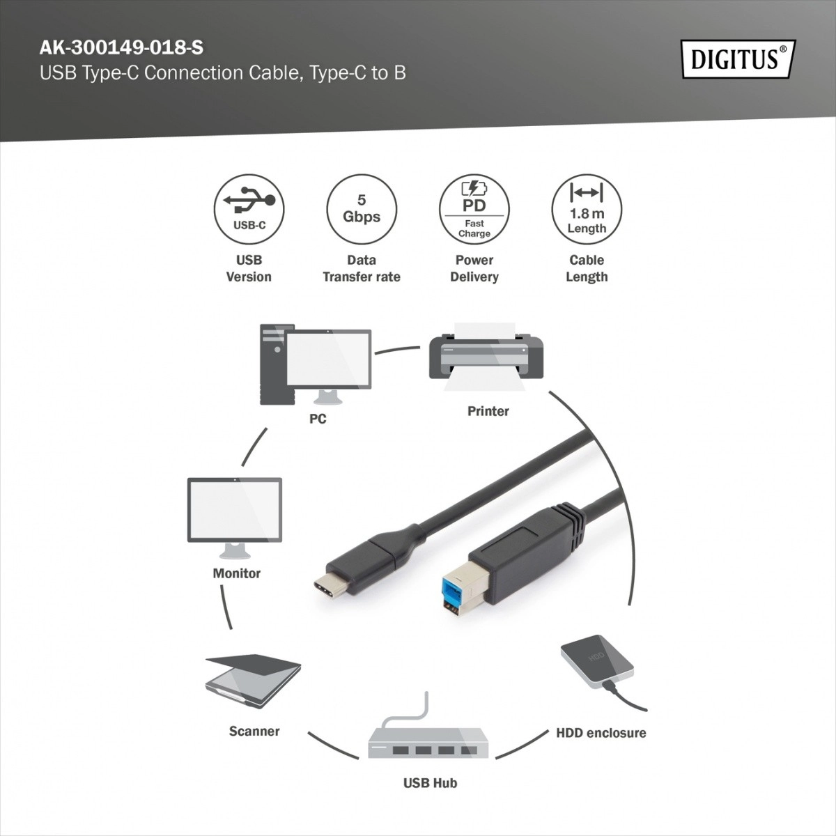 Este cable USB 3.0 de alta calidad con conectores USB‑C (macho) – USB‑B (macho) está diseñado para conectar dispositivos host (ordenador, portátil, hub USB) con periféricos equipados con puerto USB‑B, como cajas externas de discos duros, escáneres o impresoras. Gracias al estándar USB 3.0, alcanza transferencia SuperSpeed de hasta 5 Gbit/s, hasta 10× más rápido que USB 2.0, permitiendo copias de seguridad rápidas y un trabajo fluido con archivos grandes.