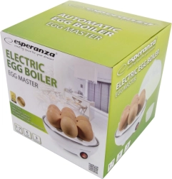 Prepara huevos perfectamente cocidos a tu gusto —pasados por agua, medio o duros— con el cocedor de huevos Esperanza Egg Master. Gracias al apagado automático y a la medición precisa del agua, obtendrás siempre resultados consistentes sin controlar el tiempo. Desayuno rápido en pocos minutos y diseño compacto adecuado para cualquier cocina.