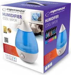 El moderno humidificador ultrasónico de aire Esperanza COOL VAPOR garantiza una humedad óptima en la habitación y crea un ambiente agradable gracias a la iluminación LED de 7 colores. Ofrece funcionamiento silencioso apto para el dormitorio y la habitación infantil, regulación de la intensidad del vapor y un amplio depósito de 2,6 l para hasta 8,5 horas de funcionamiento continuo. Para un uso seguro, está equipado con apagado automático y alarma por falta de agua.