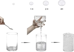 Al añadir agua, las perlas se hinchan de forma notable en pocas horas hasta aprox. 11 mm y quedan listas para usar.
