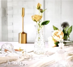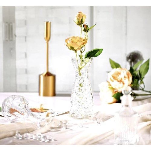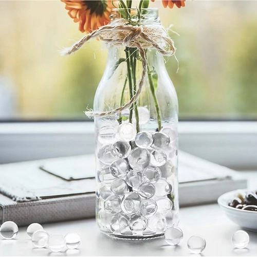 Las perlas transparentes aportan a los arreglos un aspecto limpio y moderno y estabilizan los tallos de las flores y las velas en recipientes de vidrio.
