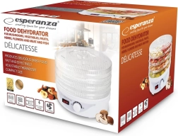 Equipado con una potencia de 250 W y un ventilador integrado, el deshidratador garantiza un secado rápido, minucioso y uniforme de los productos, lo que contribuye a preservar todas sus propiedades aromáticas y de sabor. Gracias a su tamaño compacto, encaja fácilmente incluso en una cocina pequeña y su almacenamiento no supondrá un problema.