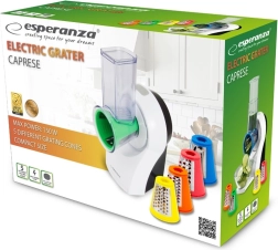 Cortador eléctrico Esperanza es ideal para triturar frutas, verduras, queso duro, chocolate, frutos secos y para preparar migas. Con sus cinco accesorios intercambiables puedes ajustar la forma y el grosor de los productos triturados según las necesidades del plato.