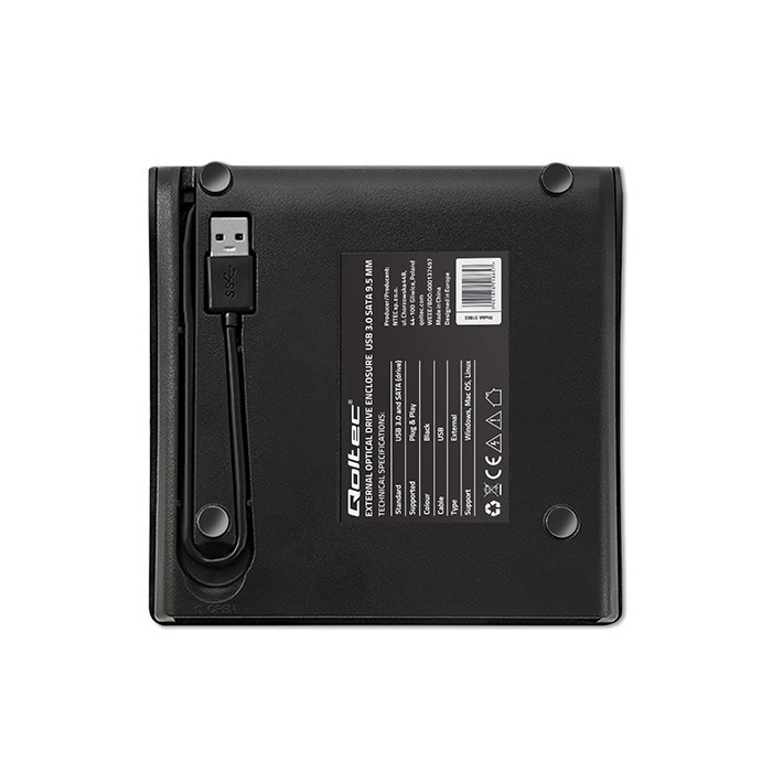 La construcción ligera y estilizada está diseñada para unidades ópticas CD/DVD SATA estándar de 9,5 mm. Ideal para viajes y oficina.