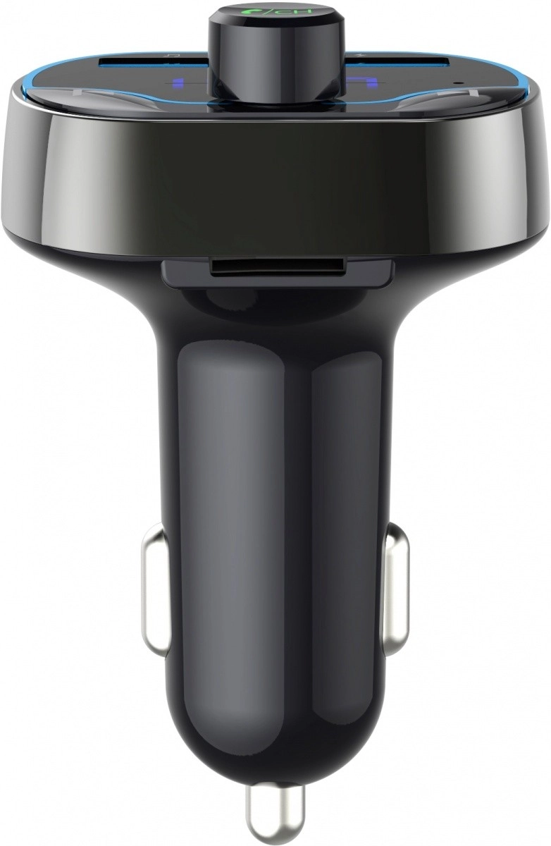 El dispositivo cuenta con dos puertos USB para cargar y reproducir de forma simultánea, un dial de control intuitivo y una brillante pantalla LED para sintonizar fácilmente la frecuencia. Su diseño compacto para toma de 12/24 V ahorra espacio y es compatible con la mayoría de vehículos.