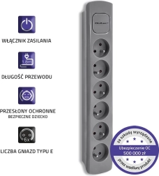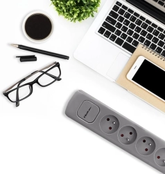 La regleta cuenta con un práctico interruptor iluminado Quick Switch, que se puede manejar cómodamente con un interruptor de pie.