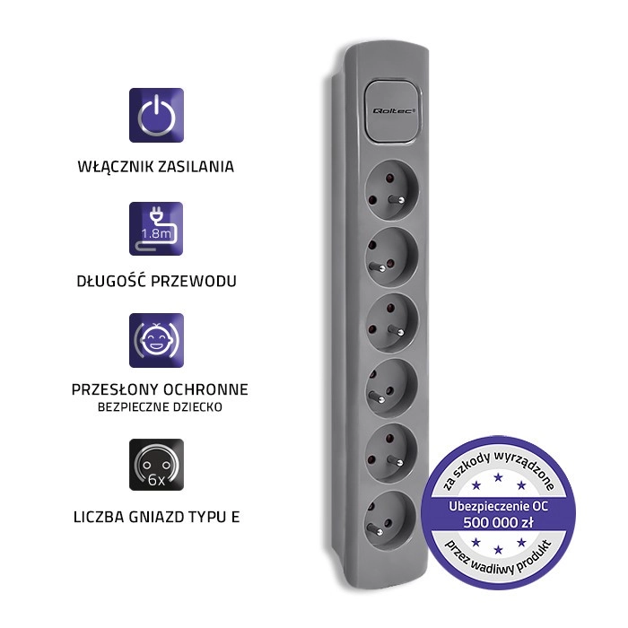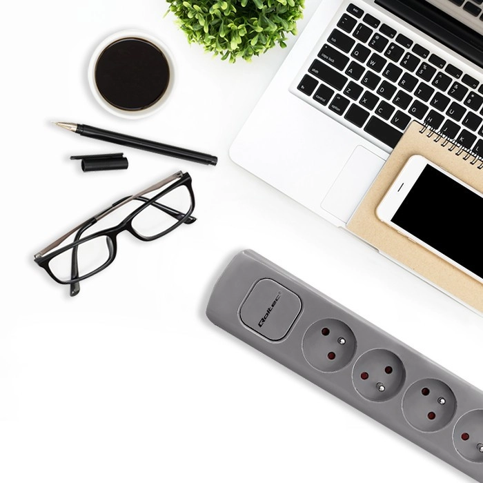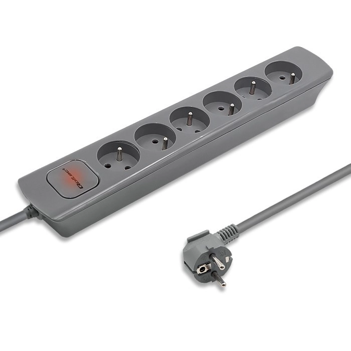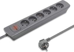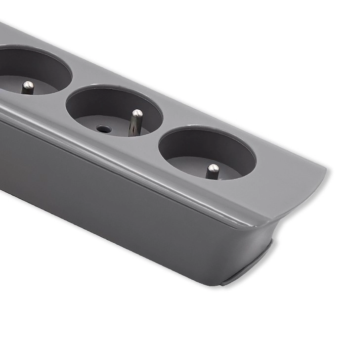 Encuentra sitio para todos tus dispositivos con esta regleta gris que ofrece seis tomas y un cable de 1,8 metros. Es adecuada para uso en hogares y oficinas donde necesitas organizar los cables de forma eficiente.