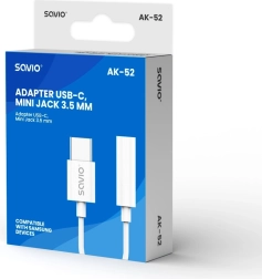 Práctico adaptador USB‑C → 3,5 mm de SAVIO que permite conectar auriculares con cable o altavoces activos a teléfonos, tabletas y portátiles modernos sin conector de auriculares. Gracias al convertidor digital‑analógico (DAC) integrado, ofrece transmisión estable y sonido estéreo de alta calidad al escuchar música, ver películas o realizar llamadas.