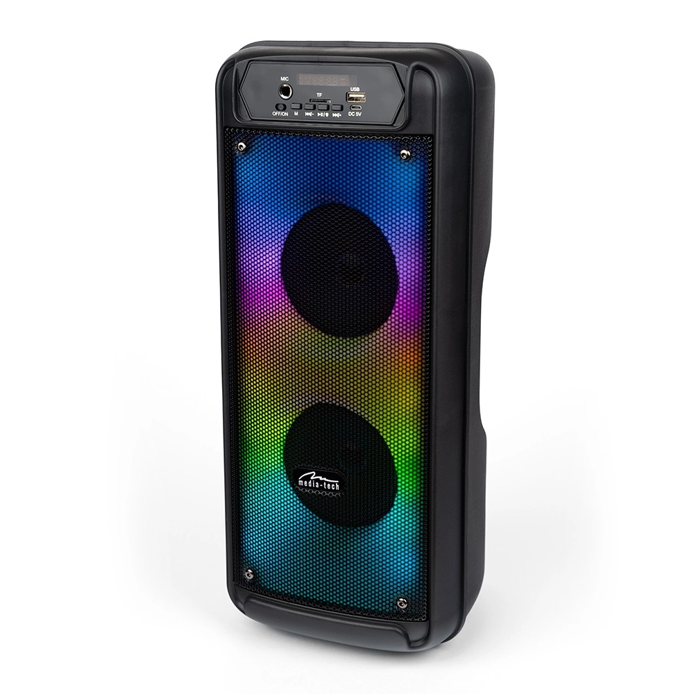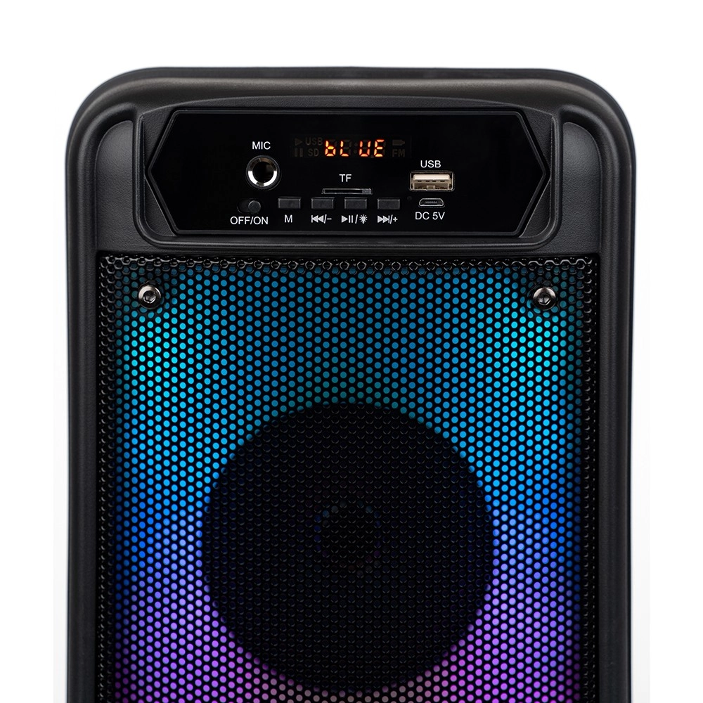 El altavoz FLAMEBOX UP ofrece una iluminación FLAME RGB poco común que cambia de color y parpadea al ritmo de la música. Gracias a ello, destaca en cualquier ocasión. Está equipado con conexión inalámbrica Bluetooth 5.0, entradas USB, microSD y AUX, y además ofrece radio FM. Sonido excepcional con potencia RMS de 14 W y PMPO de 600 W.