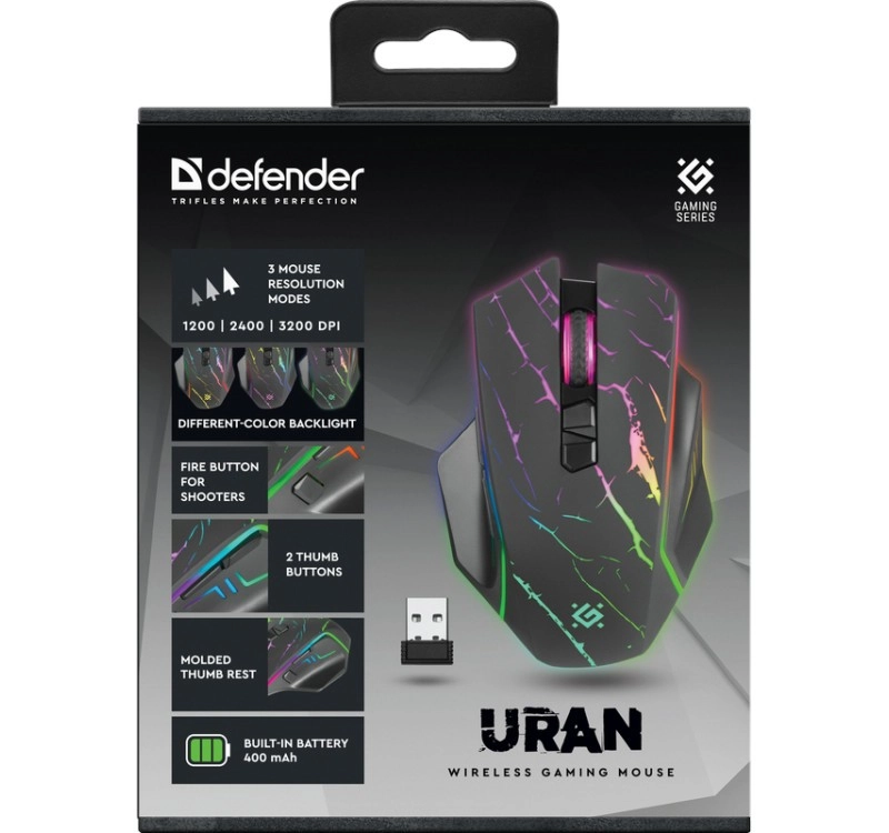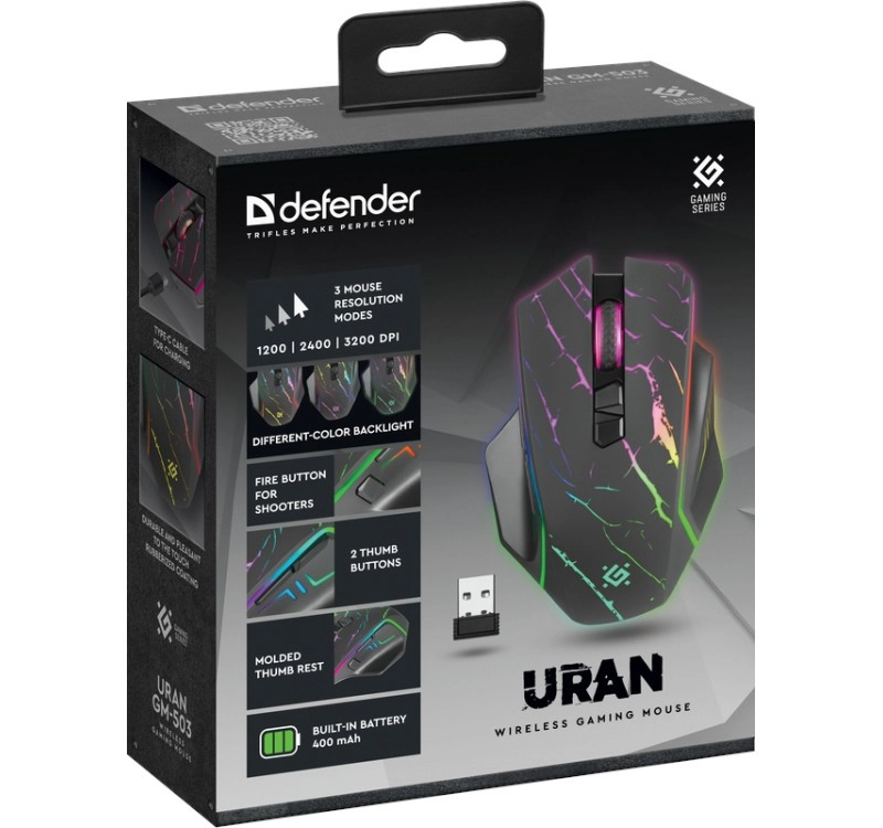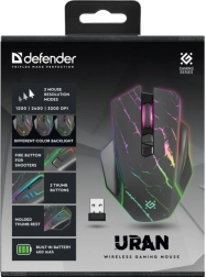 El ratón gaming inalámbrico Defender Uran GM-503 ofrece control preciso con hasta 3200 DPI, un cómodo diseño ergonómico y iluminación RGB con efecto de superficie agrietada. Gracias a sus 8 botones programables y a una conexión inalámbrica fiable, es una gran elección para jugadores que buscan rendimiento, estilo y libertad sin cables.
