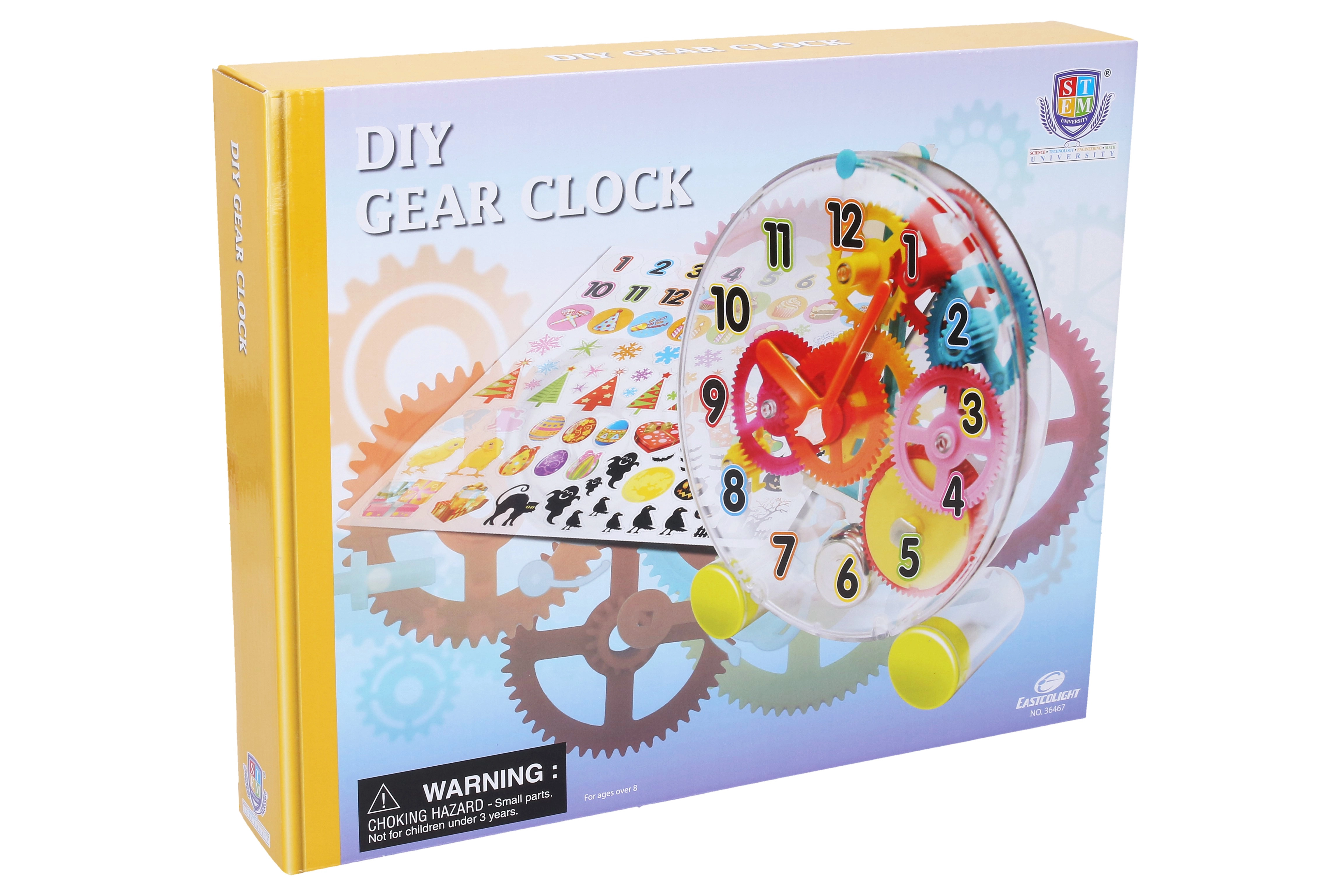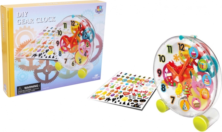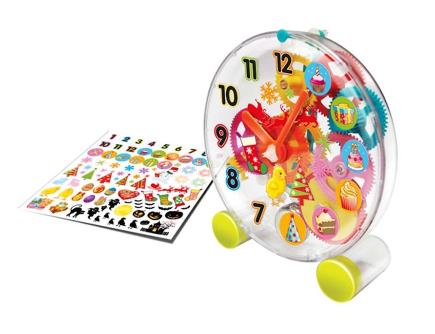 Tras el montaje, el reloj funciona mediante un mecanismo mecánico, educativo y entretenido a la vez. El paquete incluye pegatinas decorativas para que ajustes el diseño a tu gusto.