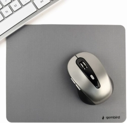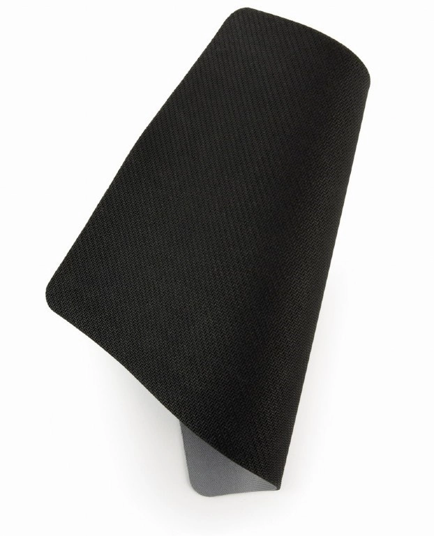 Descubre las ventajas de la alfombrilla de ratón gris fabricada con material suave pero resistente y con base de goma antideslizante.