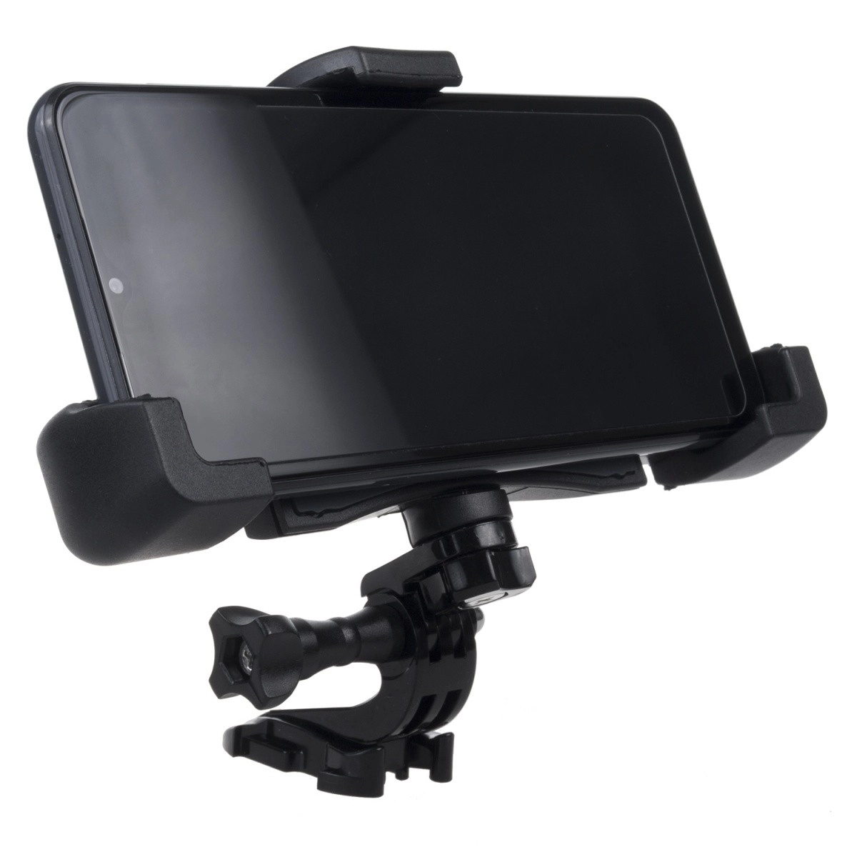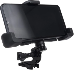 La abrazadera robusta, con posibilidad de ajuste y fijación, mantiene el teléfono firmemente en su sitio para tomas nítidas y fluidas.