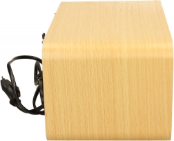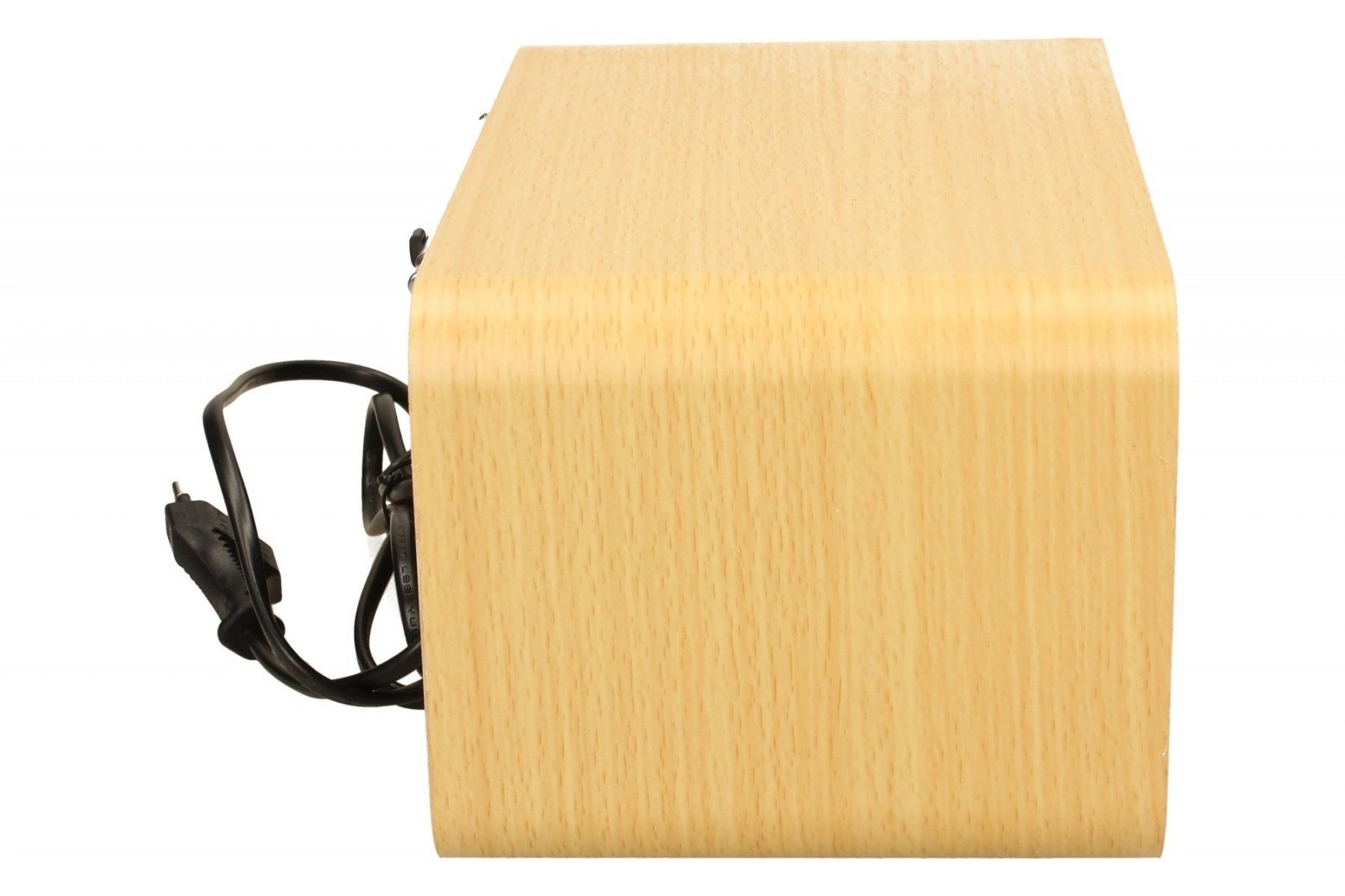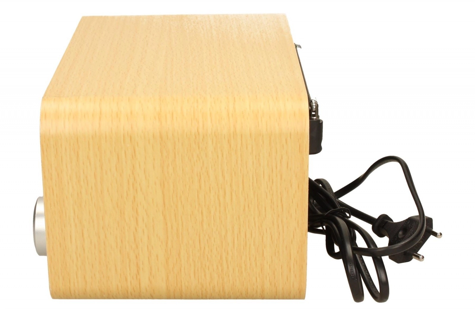 El cuerpo de madera contribuye a una reproducción más agradable de voces y música, mientras que la alimentación por red garantiza una escucha estable sin cambio de pilas.
