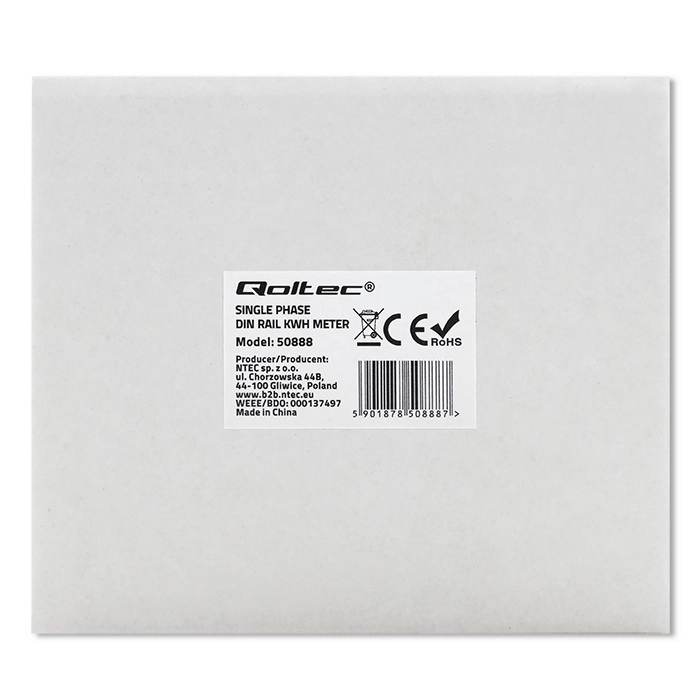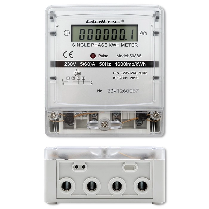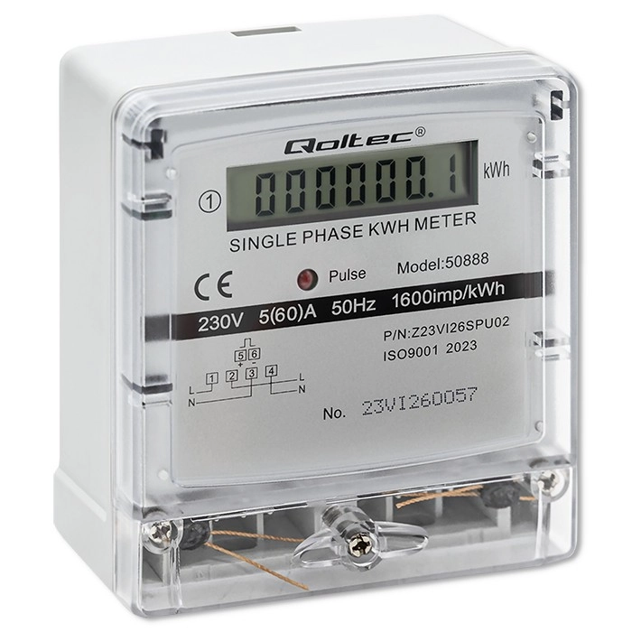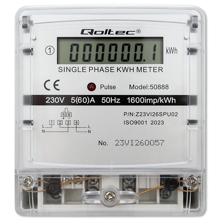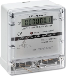 Este contador monofásico de la marca Qoltec es ideal para el monitoreo del consumo de energía en hogares y espacios comerciales. Permite una instalación sencilla y un funcionamiento cómodo gracias a su diseño compacto y a su medición precisa. La pantalla LCD muestra datos claros sobre el consumo de energía en kilovatios hora (kWh).