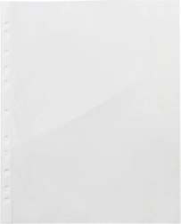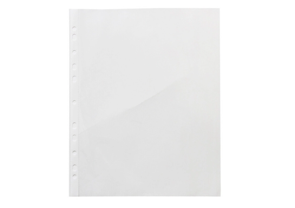 Práctico juego de fundas transparentes para documentos A4 para un almacenamiento claro y seguro de papeles en la oficina, la escuela y el hogar. Las fundas de lámina resistente protegen contra el polvo, la humedad y los arañazos y, gracias a su total transparencia, permiten una rápida comprobación del contenido. La superficie antiestática y antirreflejos con lomo perforado reforzado garantiza un archivo cómodo en carpetas y una larga vida útil. El paquete contiene 100 unidades.