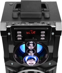 Gracias a la función de karaoke, cada momento se convierte en un pequeño concierto: solo tienes que conectar un micrófono y cantar. El altavoz se carga por USB‑C (cable incluido) y su batería Li‑Ion dura hasta 7 horas de uso. La elegante caja de MDF mejora la acústica y aporta un aspecto premium al dispositivo.