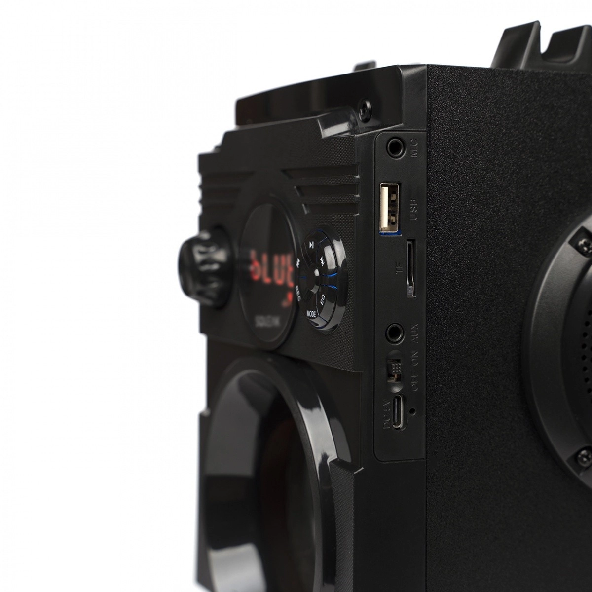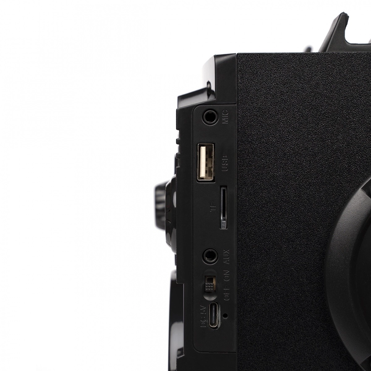 - Bluetooth de forma inalámbrica; otros puertos según configuración (p. ej., USB, AUX, TF/MicroSD, MIC)