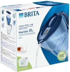 La jarra BRITA Marella XL ofrece 3,5 l de capacidad total y hasta 2,0 l de agua filtrada por cada llenado. Gracias a la tapa abatible se llena con una sola mano, el recipiente puede lavarse en lavavajillas (excepto la tapa con electrónica) y por sus dimensiones cabe en la puerta del frigorífico. El indicador electrónico BRITA Memo recuerda cambiar el filtro cada 4 semanas.