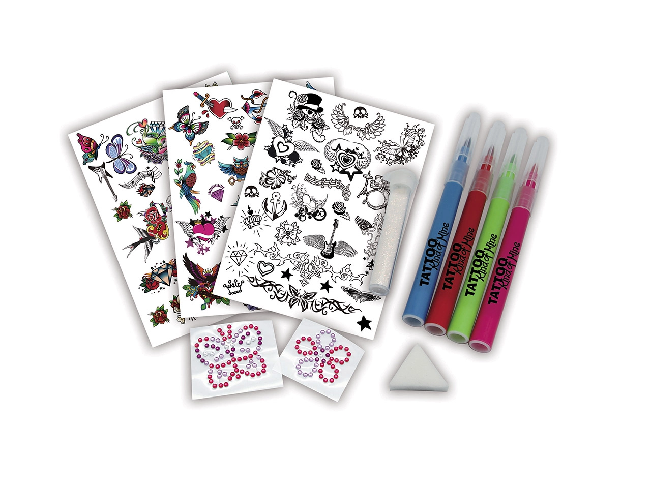 Crea tus propios tatuajes originales o intenta recrear tus motivos favoritos. El set es fácil de usar y divertido para cualquier ocasión.