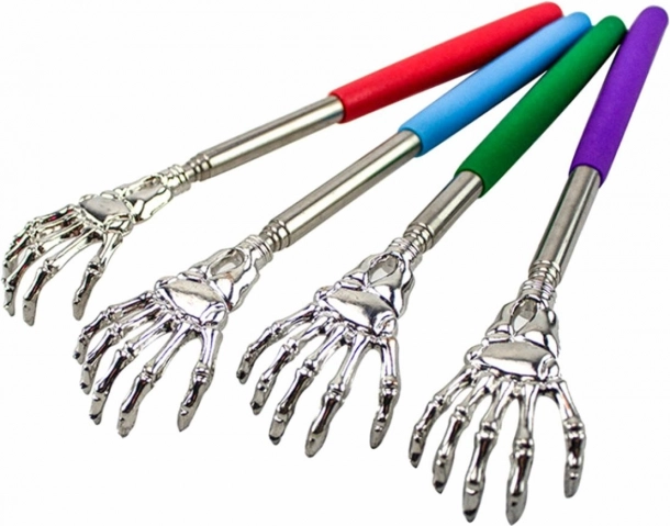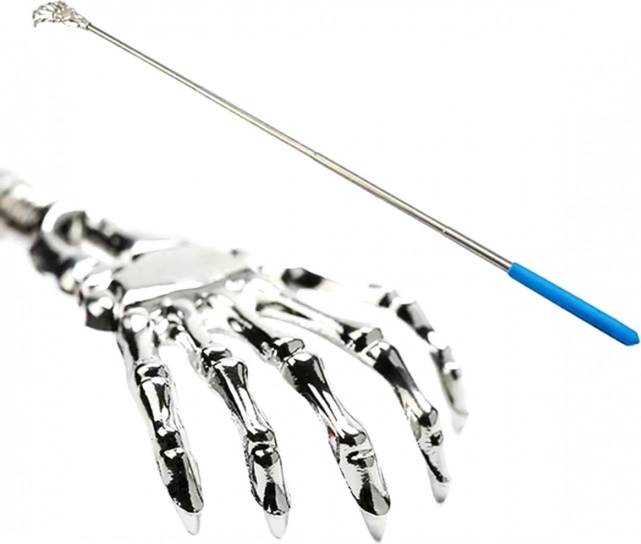 Práctico rascador de espalda telescópico con diseño de mano esquelética para un alivio rápido de la picazón en cualquier momento y lugar. Gracias a su construcción metálica y al cómodo mango de espuma, su uso es fácil y seguro. Tamaño compacto, longitud ajustable de 21–56 cm y acero inoxidable resistente lo convierten en el complemento ideal para el hogar, la oficina y los viajes.