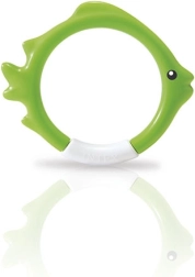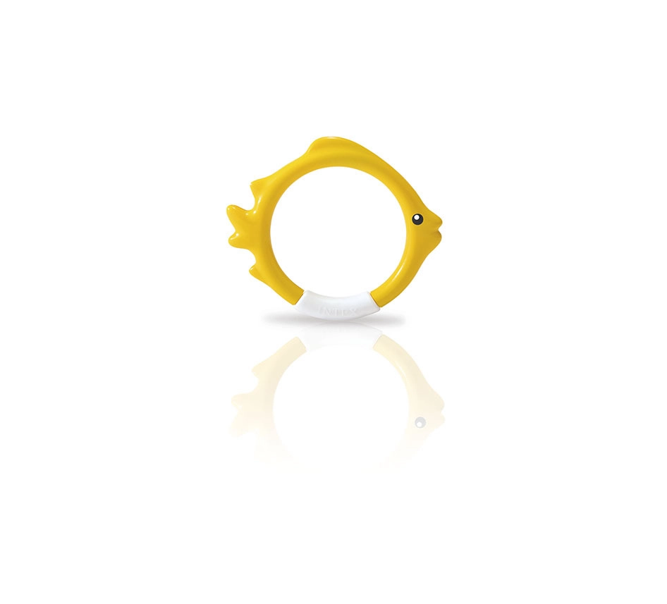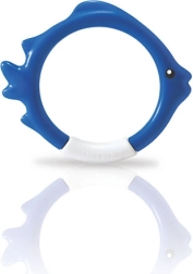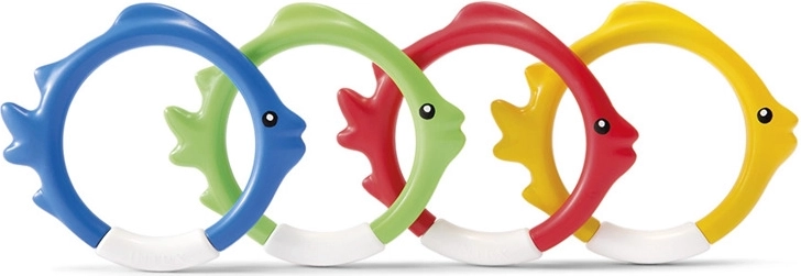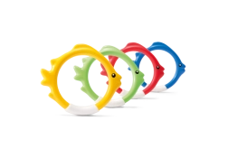 El set de aros de buceo con forma de pez de IN TEX es una ayuda ideal para el aprendizaje lúdico del buceo. Gracias a los colores llamativos y a su posición estable en el fondo de la piscina, los niños encuentran fácilmente el objetivo y con gusto practican la apnea y la orientación bajo el agua.