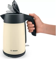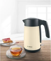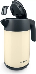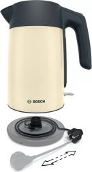 Disfrute de la comodidad con este hervidor de agua Bosch que, gracias al indicador de nivel de agua, permite hervir exactamente la cantidad que necesita. Su forma ergonómica garantiza un vertido fácil y sin derrames, ideal para el uso diario.