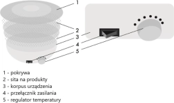 El deshidratador puede funcionar hasta 40 horas de forma continua, lo cual es práctico al procesar mayores cantidades de alimentos. Su altura es de 26 cm y la longitud del cable de alimentación es de 115 cm, lo que facilita su colocación en la encimera.