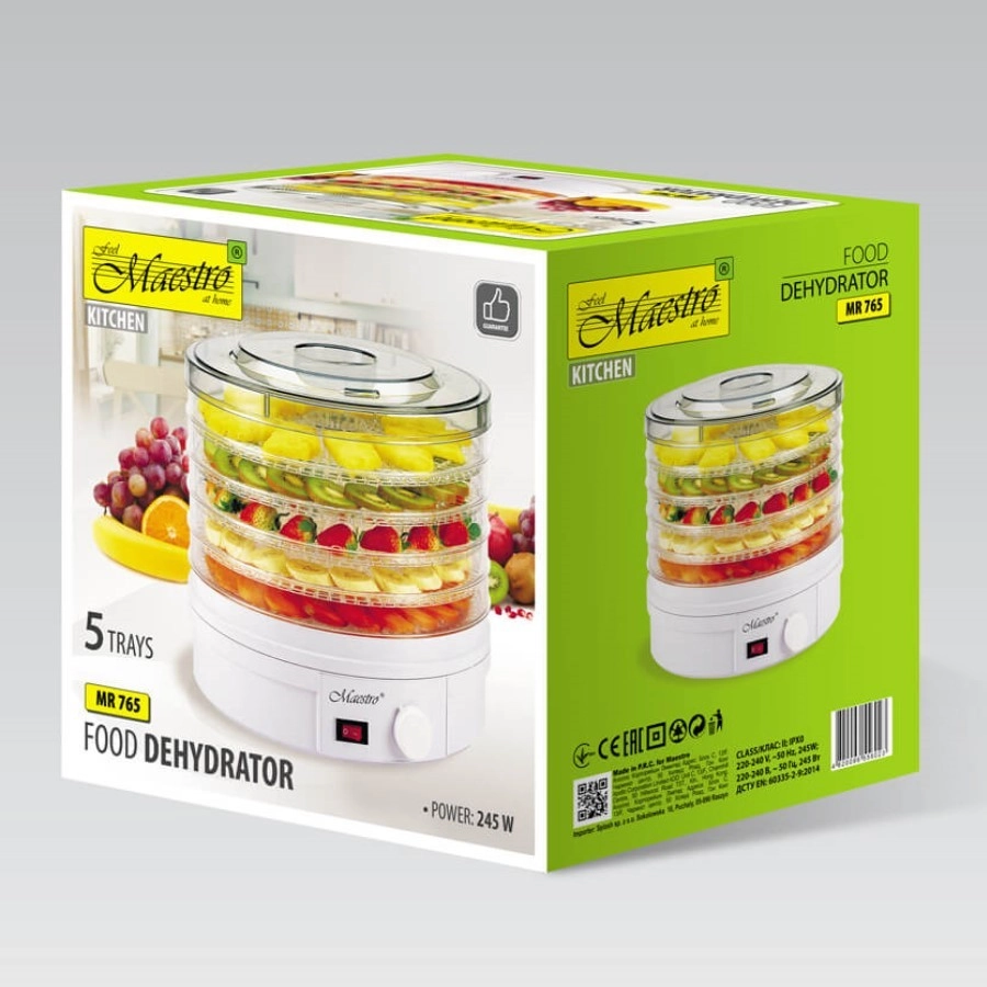 El deshidratador Maestro está equipado con 5 bandejas de 32 cm de diámetro, lo que permite secar una gran cantidad de ingredientes a la vez.