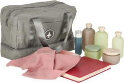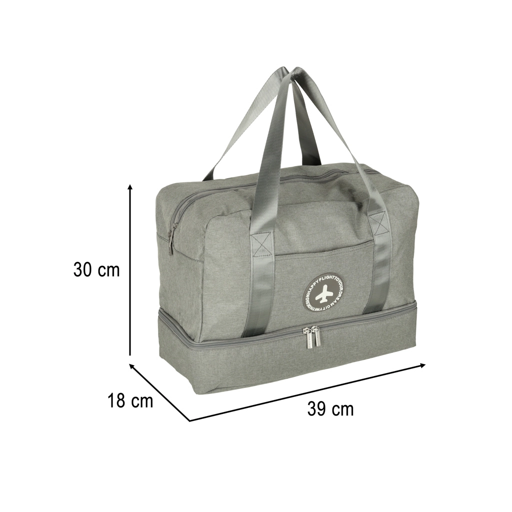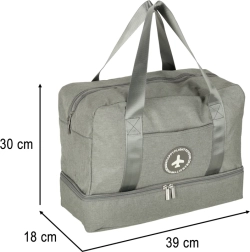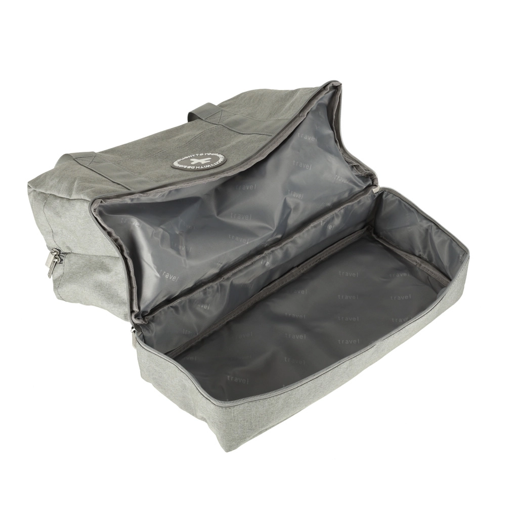 ¿Te vas de viaje? Te vendrá bien una práctica bolsa de viaje gris. Esta bolsa tiene 5 compartimentos de distintos tamaños que facilitan la organización de ropa, cosméticos, documentos o accesorios electrónicos. Uno de los compartimentos cuenta con un forro impermeable especial para proteger de la humedad, ideal para guardar objetos húmedos o cosméticos líquidos.